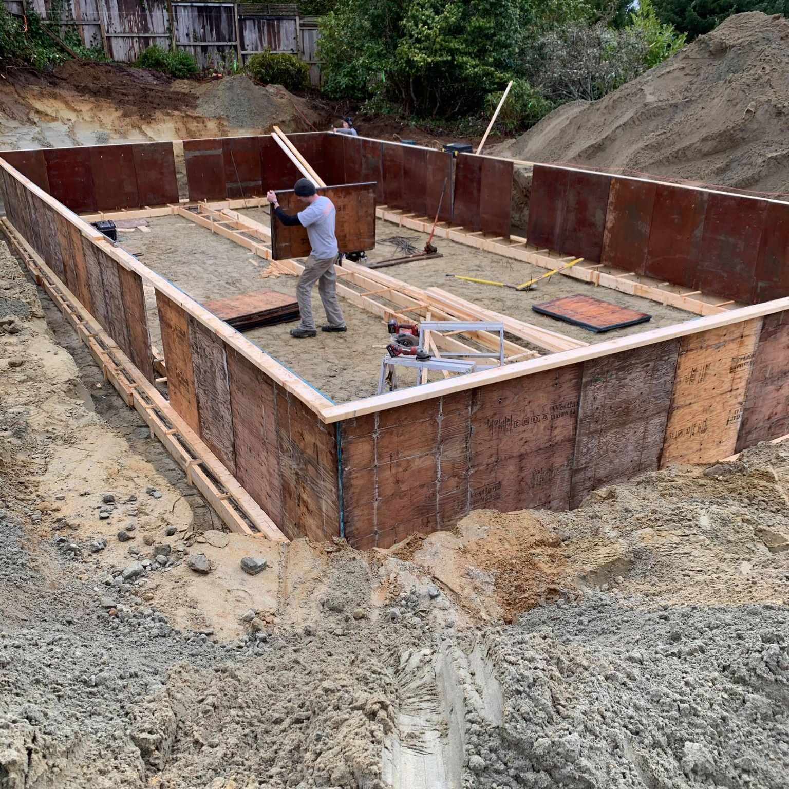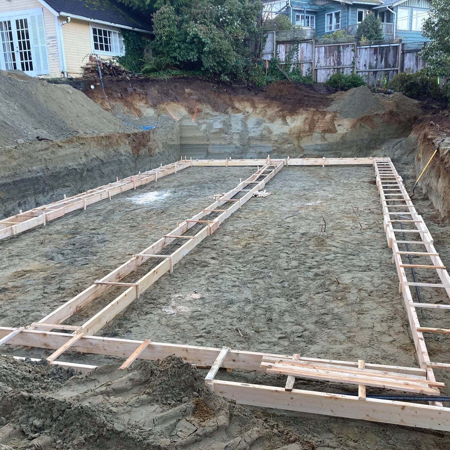 New project in Qualicum Beach, a small custom carriage home we just started this past week. Excavation completed, footing and foundation walls formed and poured all in under a week. This is going to be a quick but beautiful project! We’re all excited to be working in town again!